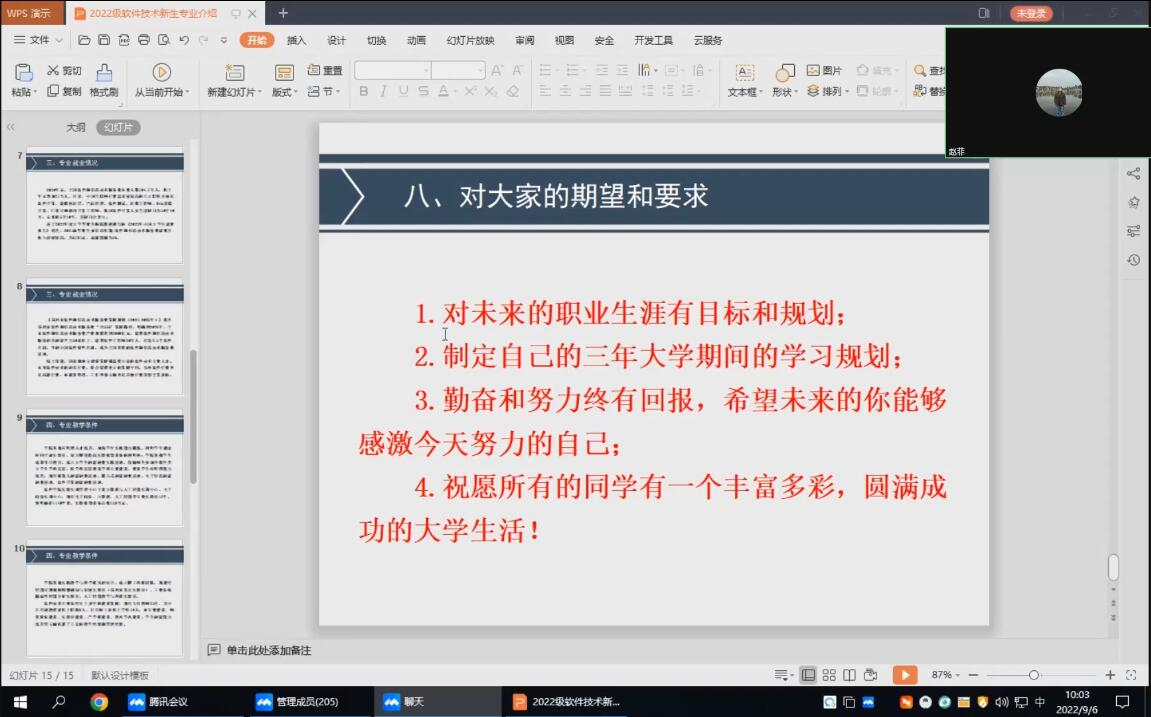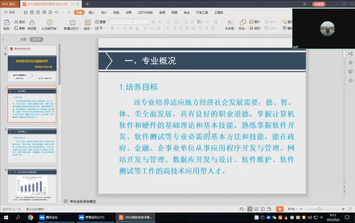 为加强2022级软件技术专业新生对自身专业的认知与了解,提高新生对专业的认可,明确未来的学习生活目标,9月6日上午,yL23411永利集团官网组织全体2022级新同学召开了专业介绍会,采用线上形式开展。