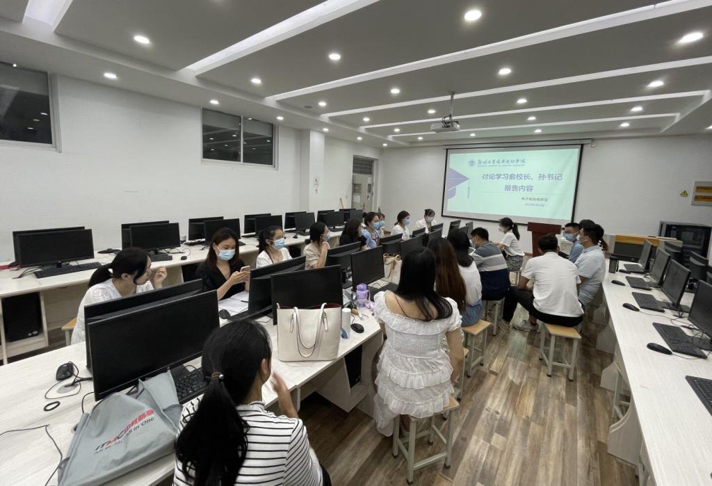 2022年6月13日下午,电子商务教研室在XK1-403召开了教职工专题学习会,专题学习俞董事长、孙书记在2022年暑期培训班上的专题报告精神。会议由教研室副主任王新露主持,教研室主任刘彩霞及电子商务教研室全体教师参加了会议。