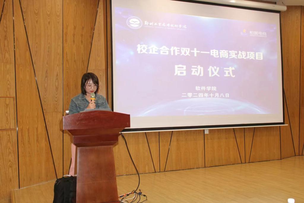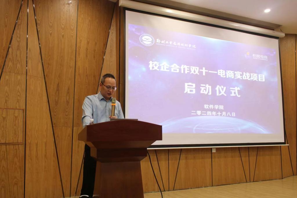 随后,新乡市柏客电子商务有限公司总监唐圆进行动员讲话。唐圆总监介绍了公司在电商领域的丰富经验和实力,鼓励同学们积极参与项目,勇于挑战自我,在实战中锻炼自己的能力。与此同时,新乡市柏客电子商务有限公司总监路全佳进行了精彩的宣讲。他详细介绍了双十一电商实战项目的具体内容和实施计划,让同学们对项目有了更清晰的认识。