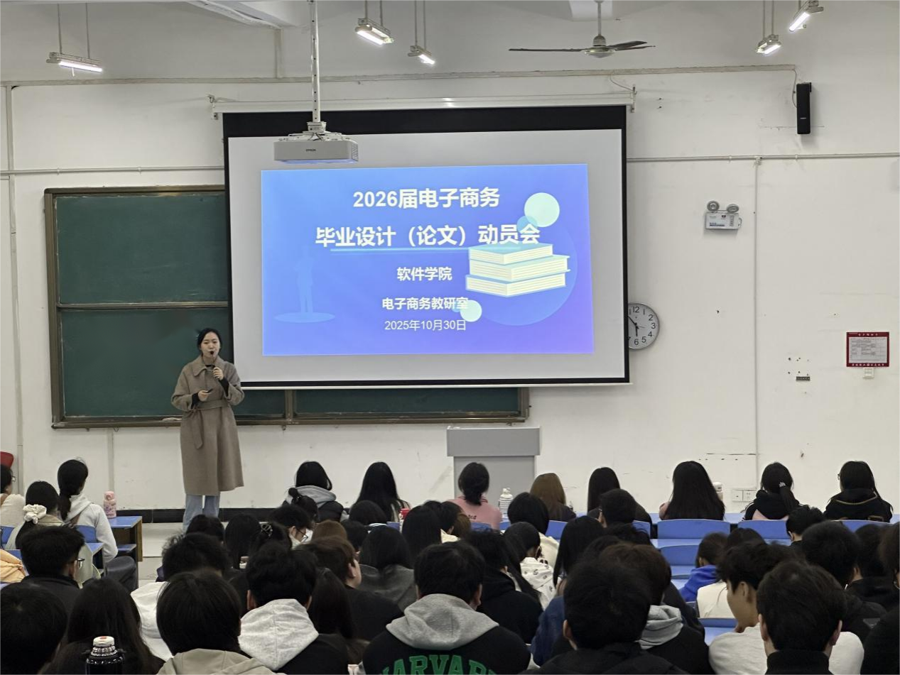 2025年10月30日下午六点,yL23411永利集团官网电子商务教研室为保障2026届电子商务专业毕业设计顺利推进,在信科楼阶一教室开展毕业设计员工动员会。会议内容主要围绕毕业设计的要求、常见问题、注意事项、指导老师和员工的双选等展开,本次会议由教研室蓝紫琪老师主持讲解,教研室主任王新露进行补充,参加成员为2022级电子商务(BK)1-4班和2024级电子商务(专升本)1-4班员工。