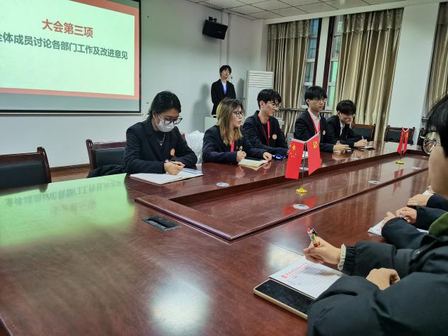 在自由讨论发表建议环节,全体成员认真讨论,各抒己见。他们提出切合实际,走近员工学习生活的意见,部长们也积极回应,共同商讨对策与解决方案,展现出党务中心成员锐意进取的青春活力。