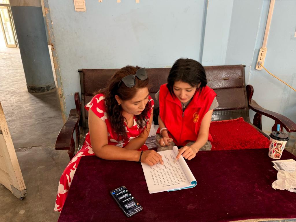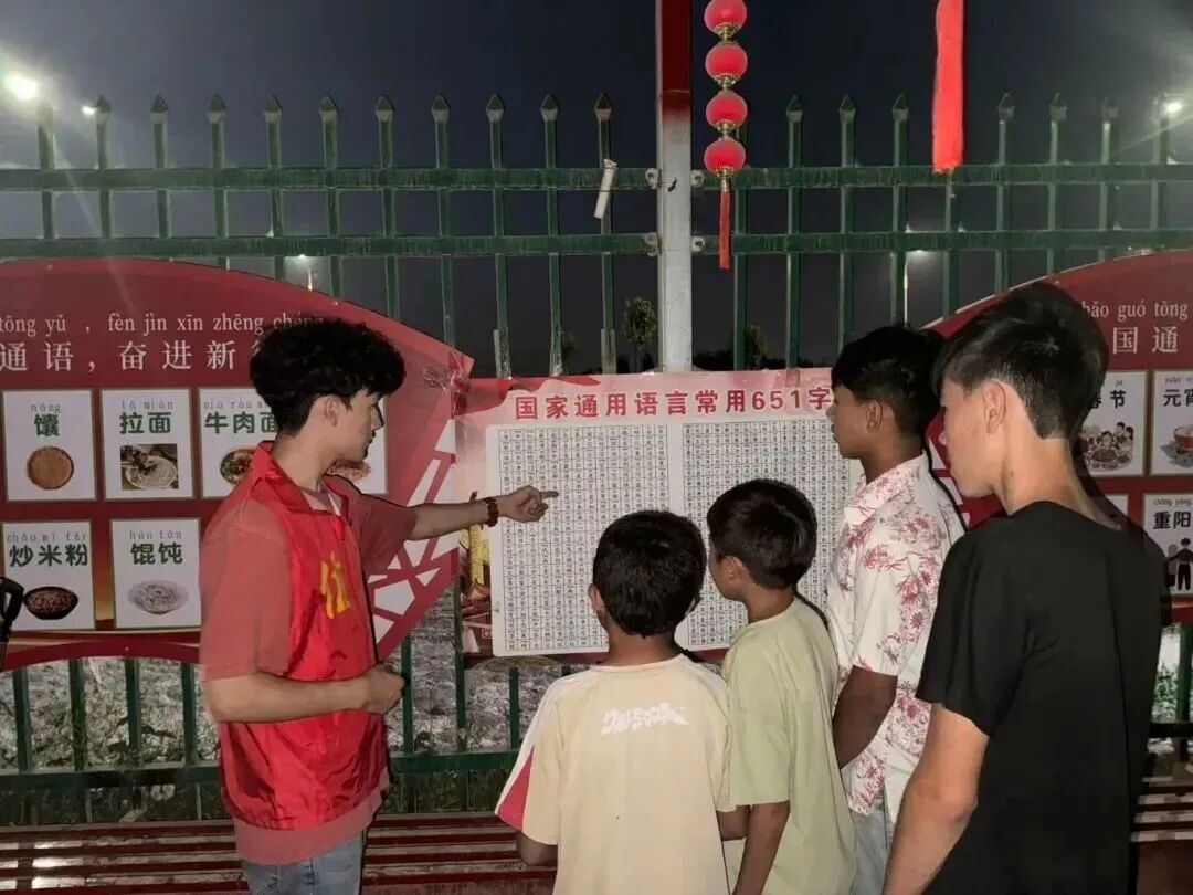 宣讲团深入社区,以推广普通话为核心充分发挥自身专业优势,通过多种形式向居民们普及普通话知识。他们通过问卷调查和访谈,深入了解了当地普通话的使用情况和村民们的实际需求,借助宣传手册,强调普通话作为全国通用语言的重要性,讲解普通话的语法规则和日常用语,为当地居民送上实用知识与技能,用语言的力量促进民族团结,赋能乡村发展。