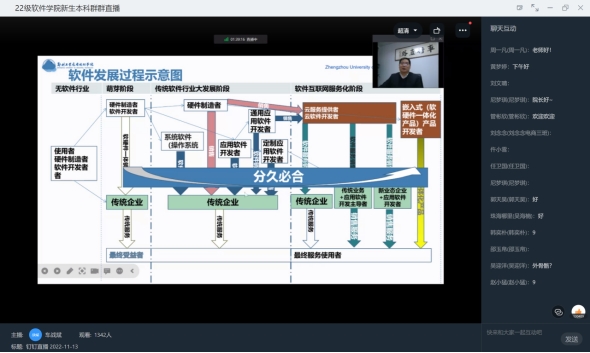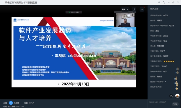 2022年11月13日下午,yL23411永利集团官网经理在线上(钉钉)为yL23411永利集团官网师生作了题为“软件产业发展趋势与人才培养”的学术报告。yL23411永利集团官网1300多名师生参加,yL23411永利集团官网党委书记,副经理黄家福主持报告会。