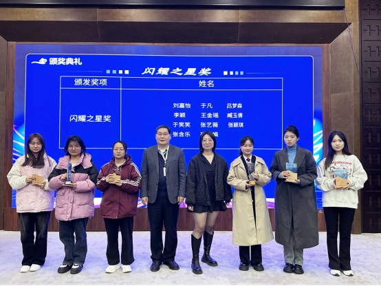 接下来对优秀实训学员、数据优异学员以及闪耀之星学员进行表彰。2023级电子商务3班李颖同学作为优秀员工代表上台发言,分享了他在实战项目中的经验和感悟。