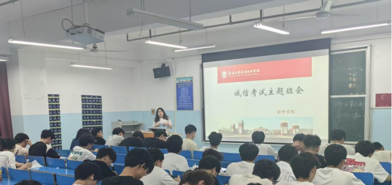 班会最后,各班级发出倡议:以实力争取优异成绩,以诚信展现优良学风,争做德技双馨的软件人。同学们纷纷表示,将从自身做起,严守考纪,拒绝作弊,用真实成绩书写青春答卷。