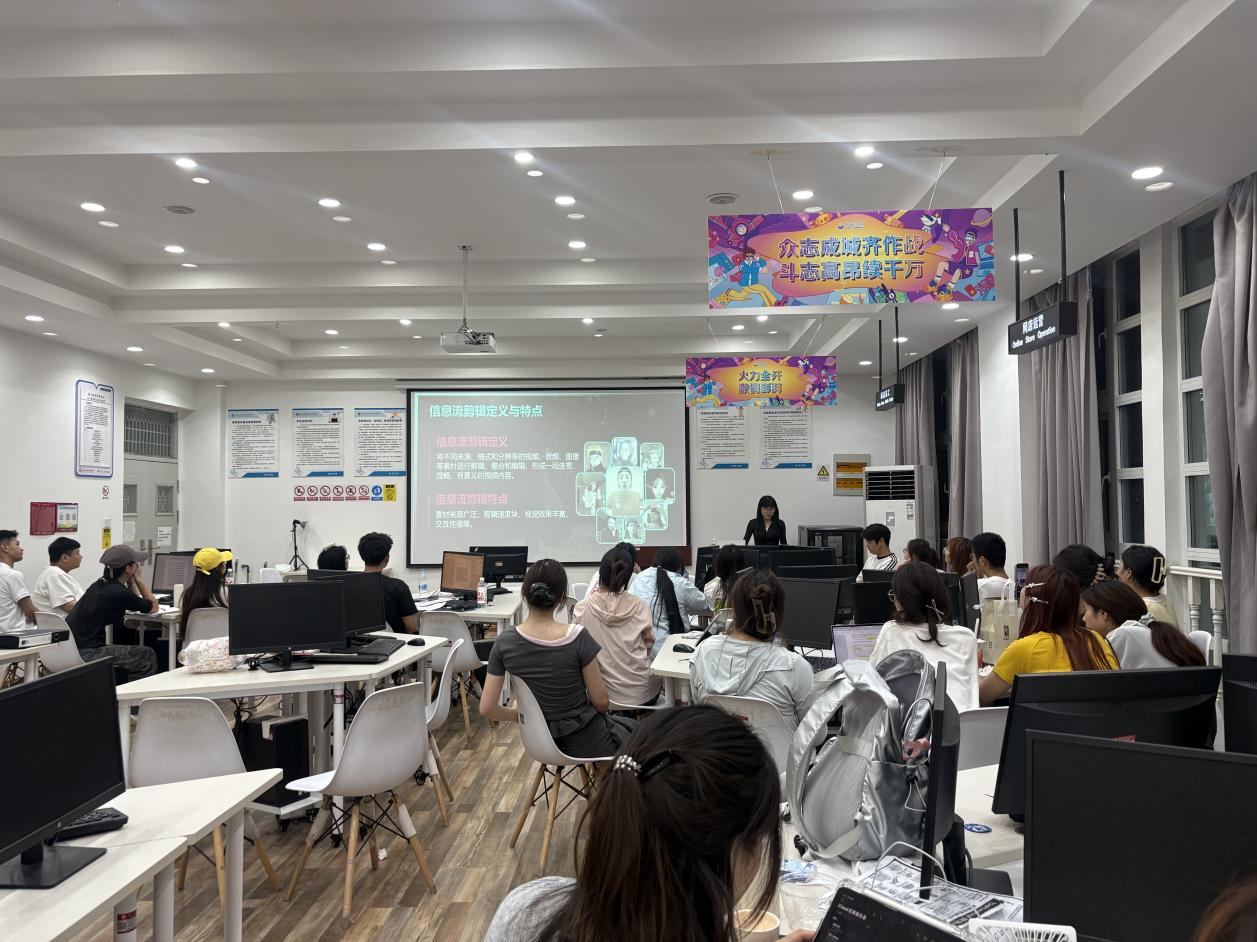 培训伊始,李美老师以“信息流剪辑概述”切入,用当下热门案例拆解短视频传播逻辑,让抽象概念变得通俗易懂。随后,围绕“优质短视频要素”,她详细剖析内容创意、画面构图、节奏把控等关键要素,强调“好的短视频不仅要视觉吸睛,更要传递价值”。在“拍摄技巧基础”与“拍摄与剪辑的结合”环节,李美老师亲自示范运镜手法、光线运用技巧,并通过多组对比案例,讲解如何在拍摄阶段为后期剪辑预留创作空间。