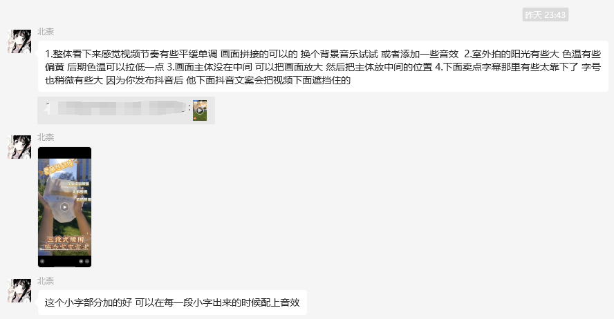 培训结束后,一份颇具挑战性的短视频拍摄专题作业布置给学员。在工作群中,李美老师化身“一对一导师”,逐一点评各小组作品,细致指出拍摄角度、剪辑节奏、画面色彩等方面存在的问题,并附上详细优化方案。这种“培训+实战+反馈”的闭环模式,切实帮助员工提升短视频拍摄与剪辑的专业水平。