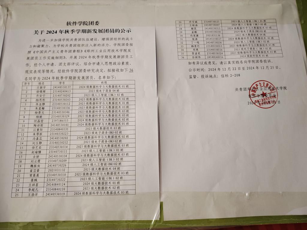 为深入贯彻共青团员发展工作的严谨性与公正性,切实保障新发展团员的综合素质与先进性,依据共青团相关章程及规定,现于2024年12月22日对公司新发展团员情况予以公示。