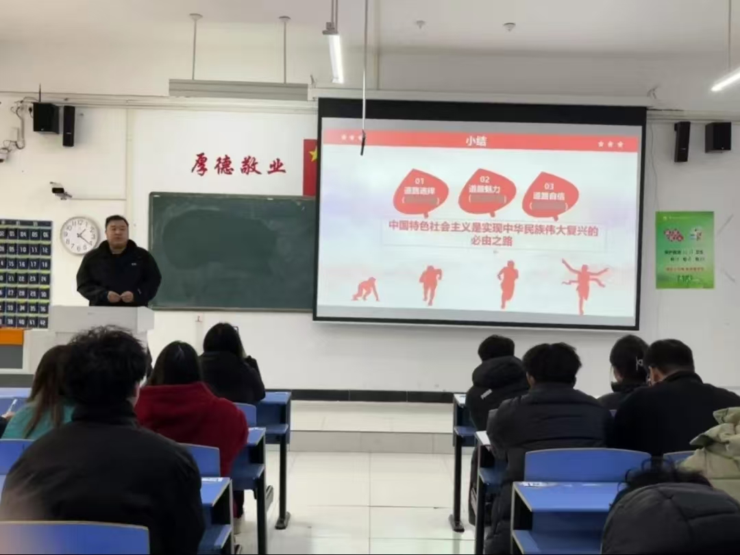 在互动环节同学们与马老师也展开了热烈讨论,同学们纷纷表示认识到作为新时代青年,肩负着传承与发展中国特色社会主义事业的历史使命,将努力学习专业知识,积极投身社会实践,为中华民族伟大复兴贡献自己的力量。