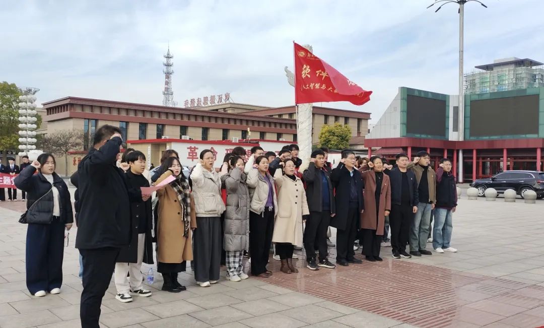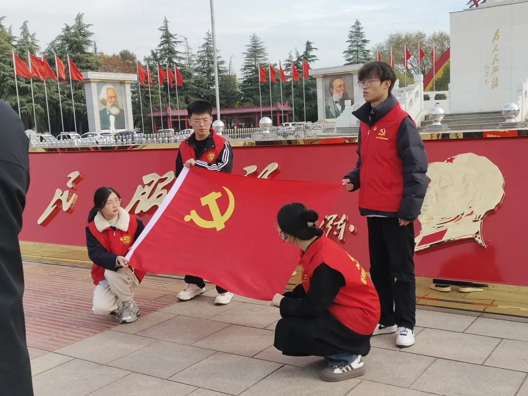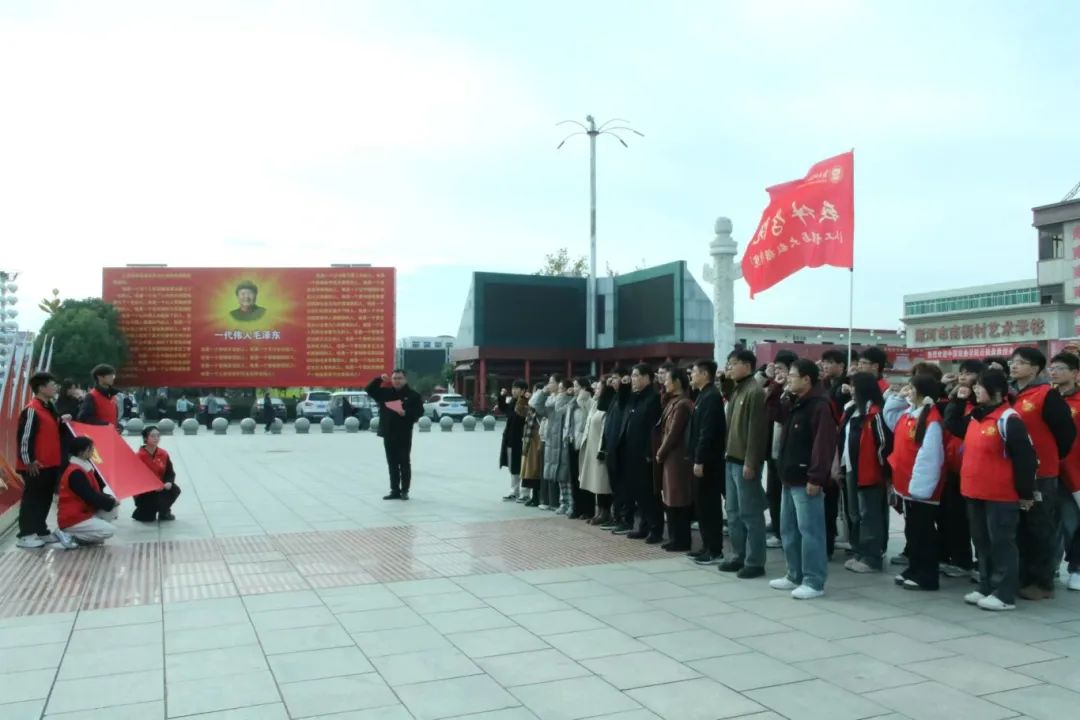 移步东方红广场,毛主席雕像庄严肃穆,阳光洒下,更添几分神圣。老师们以及志愿者们整齐列队,在雕像下重温入党誓词,洪亮之声彰显赓续红色血脉、践行初心使命的笃定决心。