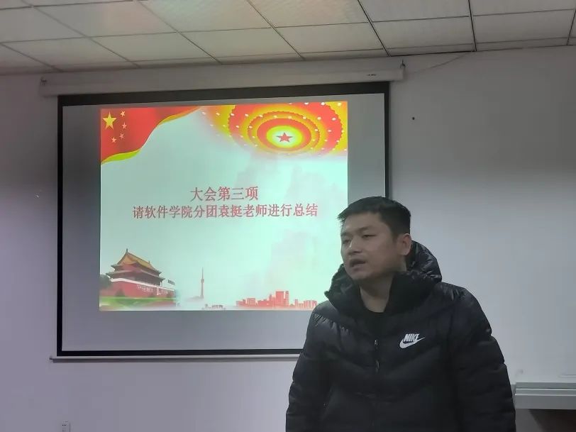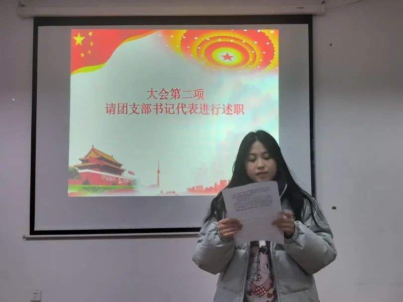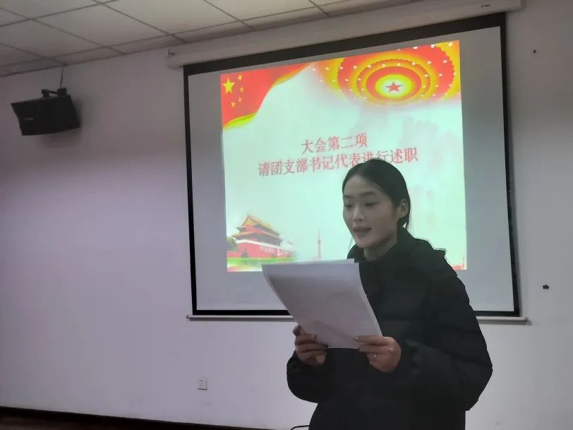 接着,各团支部书记代表依次上台进行述职。他们汇报了本支部的工作开展情况、取得的成绩以及存在的问题和不足,并分享了一些成功的经验和感悟。团委书记袁挺老师认真聆听每位书记的述职发言,针对他们的表现进行了打分评级,对每个团支部的努力给予了充分的肯定和鼓励。