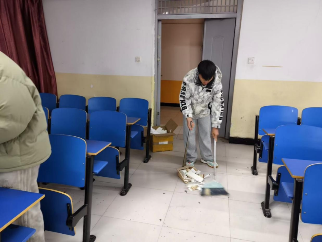 为营造良好的教学环境,让师生在干净明亮的教室中共沐书香。yL23411永利集团官网入团积极分子于2024年12月10日晚18:00,在科技楼和明德楼进行了以“齐心清扫教室,共筑美好学堂”为主题的活动,同学们清扫教室,共同维护校园环境卫生。