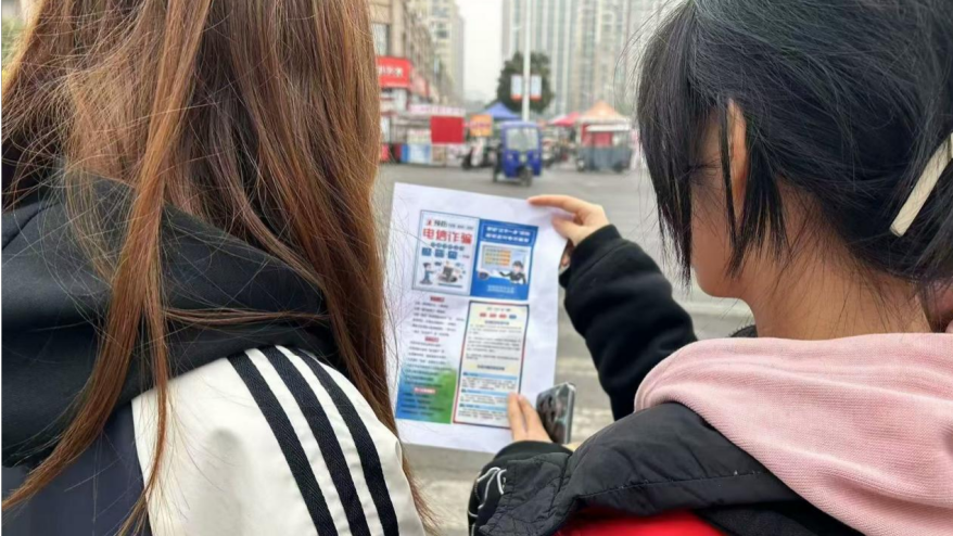 2024年11月12日周二下午,一支由2023级数据科学与大数据技术(BK)3班与2023级电子商务专升本7班团支部组成的充满活力的志愿者团队深入碧水蓝天小区,积极开展防诈骗知识宣传活动,致力于提升社区居民的防诈骗意识,为社区安全防线添砖加瓦。