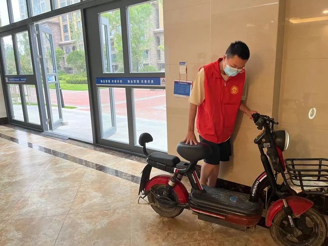 志愿者通过规范社区电动车摆放,及时清理楼内乱停乱放车辆,张贴消防安全宣传海报等实际行动,有效地将消防安全知识传递给大家,并呼吁大家共同营造“我为人人,人人为我”的良好消防安全氛围。