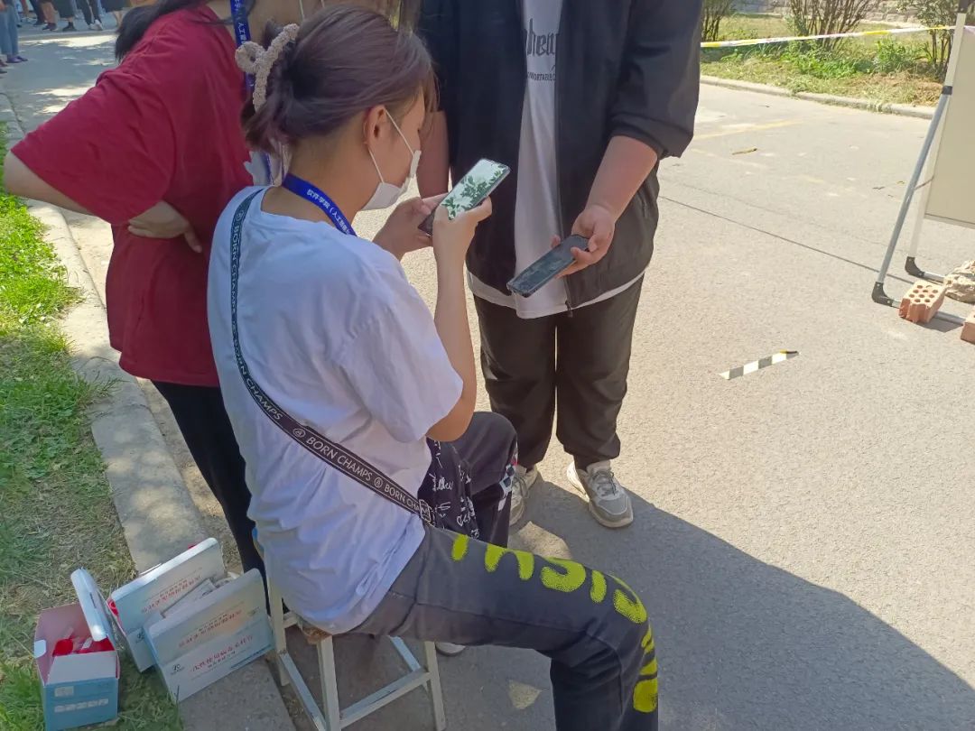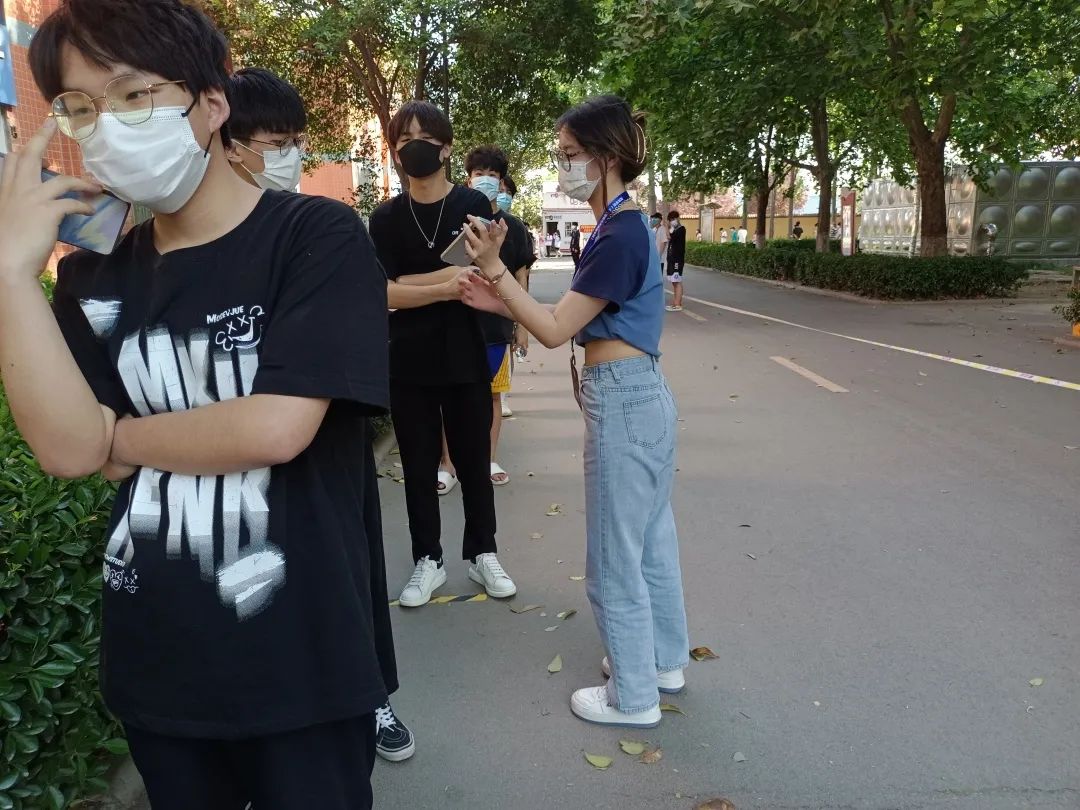在东、西校区核酸检测点,员工们间隔一米、佩戴口罩等待检测,整个过程规范有序。二十人一组,志愿者负责管控人数,方便医护人员进行检测。在排队等候区域,等待检测的同学主动保持安全距离,迅速采样,在志愿者的协助下,整个过程有条不紊,井然有序。