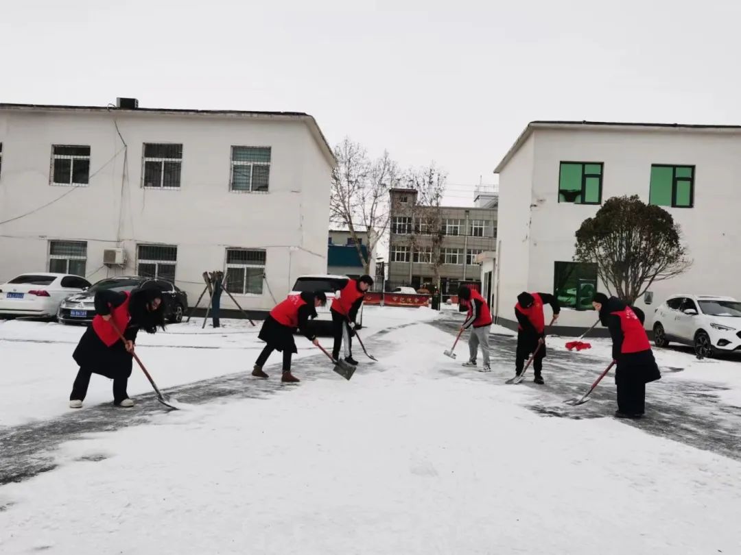 寒冷的天气阻挡不住他们的热情,公司志愿者们统一服装,戴上手套,手持铁锹、扫帚等清雪工具,根据雪量,分片包干,有条不紊地清理着院内积雪。不畏严寒、相互配合,齐心协力,干劲十足。