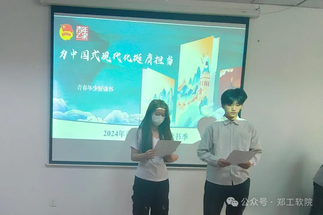 此次读书活动主要讲述了读书的意义和方法,以倡导读书、传播知识,推动社会文明与进步,在此处活动中同学们积极上台分享自己喜欢的书籍和阅读感悟并向大家推荐自己所喜欢的书目。聚焦贯彻习近平总书记关于“两个结合”的重要论述,重点围绕阅读凝结中华优秀传统文化精华的典籍,引导青年理解中华文明的突出特性、深刻理解“两个结合”的重大意义,不断坚定“四个自信”特别是历史自信、文化自信,积极参与推动中华优秀传统文化创造性转化、创新性发展,为促进文化繁荣、建设文化强国、建设中华民族现代文明贡献青春力量。