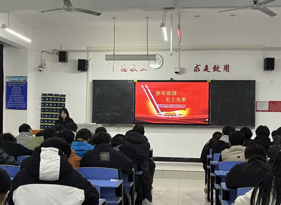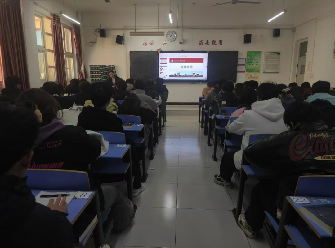 各班级组织的征兵主题班会同样精彩纷呈,成为同学们了解军旅生活、规划人生方向的重要窗口。在班会课上,辅导员们化身征兵政策的 “宣讲员”,详细解读入伍条件、服役待遇、退伍安置等同学们关心的核心问题,让大家对参军入伍有了清晰而全面的认识。同时,通过播放精心挑选的军旅题材视频,那震撼人心的画面,展现了人民军队的英勇无畏和飒爽英姿,让同学们心潮澎湃。