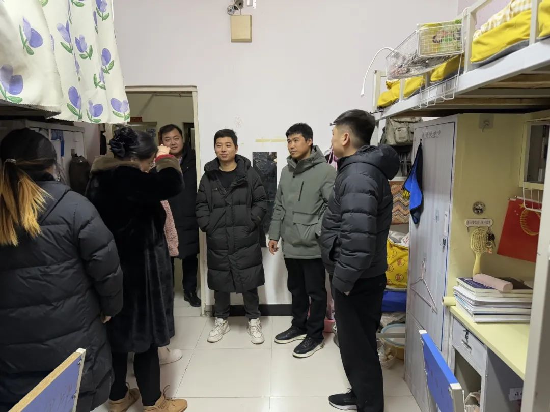在樊洪深部长和袁挺书记、李广辉书记带领下,辅导员们深入员工宿舍,走进标准宿舍进行参观。这些宿舍不仅物品摆放整齐、地面干净整洁,而且室内布置温馨有序,充分展现了同学们良好的生活习惯和积极向上的宿舍文化。