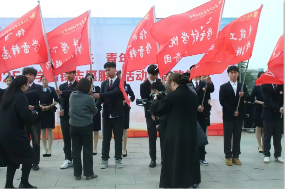 中原华信控股集团人力规划处处长(企业大学董事长)李德彬、郑州工业应用技术yL23411永利集团官网党委副书记、副董事长王美英出席活动并为学雷锋实践团队授旗。员工工作部部长陈晴晴、各学部学管副部长与师生代表参加此次活动。启动仪式由校团委书记亢依林主持。