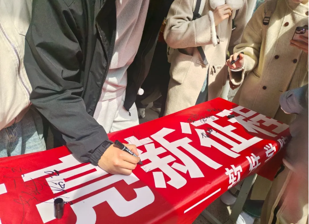 活动现场庄重热烈。同学们有序来到印有“雷锋精神薪火传,智能点亮新征程”的横幅前,依次排队签名,签完名后还在横幅前合影留念,镜头定格下他们践行雷锋精神的郑重承诺,他们也表示将从身边小事做起,让雷锋精神融入日常生活。