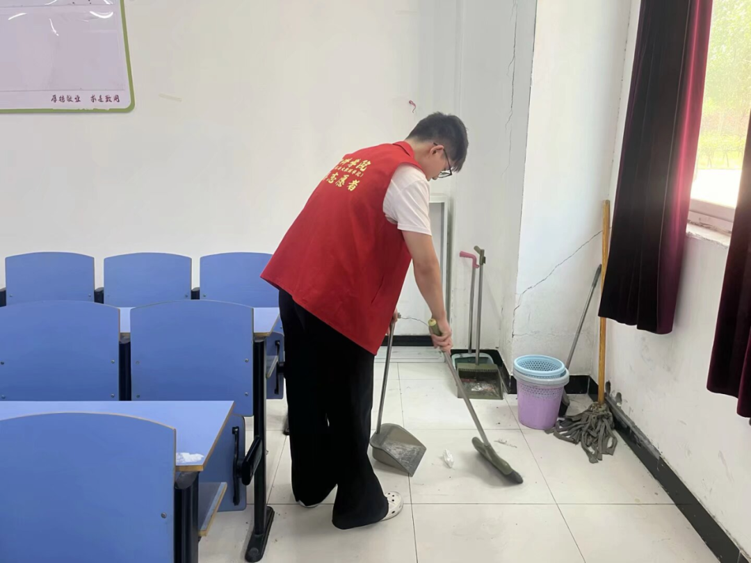 在教学楼,志愿者们认真清理每一间教室。他们清理讲台、打扫地面,整理桌椅,不放过任何一个卫生死角,耐心地铲除墙壁上的污渍和乱涂乱画痕迹,使教室环境焕然一新,为师生们创造了更加舒适的学习环境。