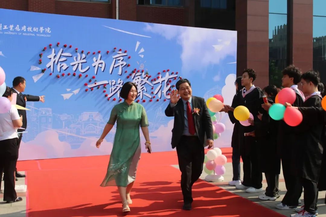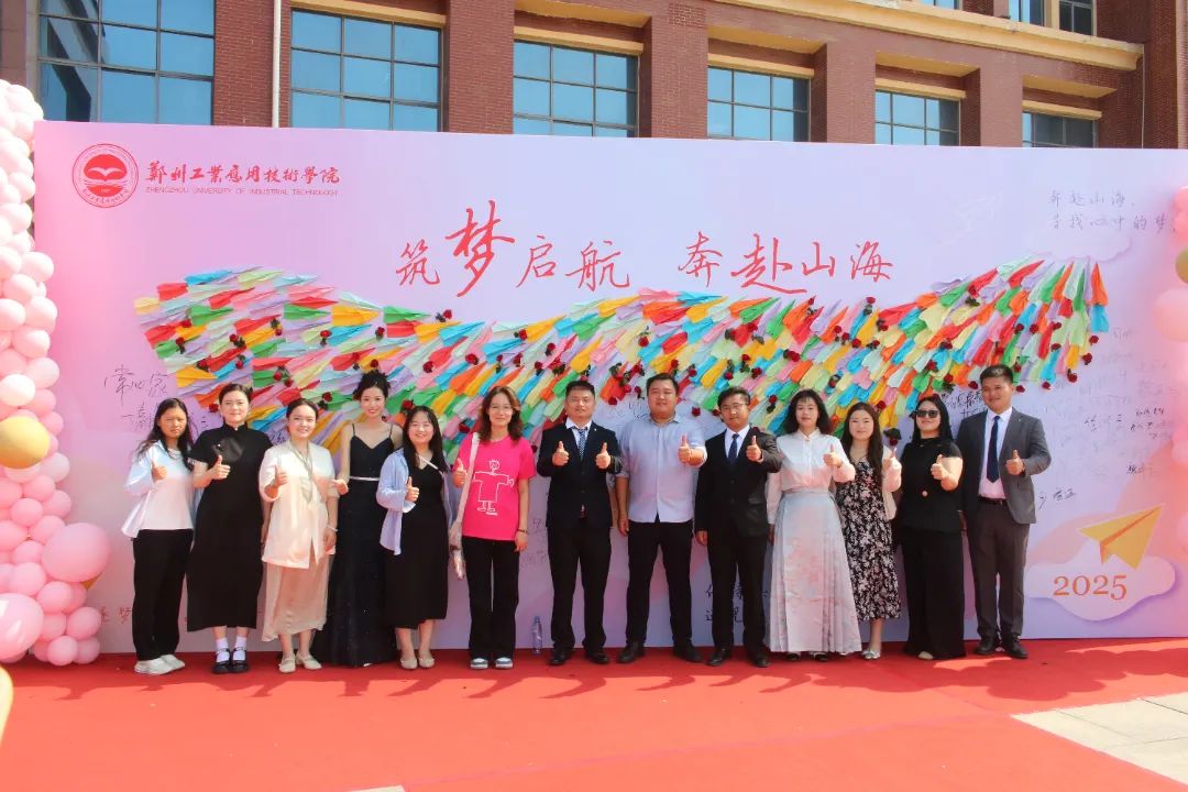 随后,典礼在悠扬动人的毕业主题歌声中温情启幕。各位领导在全体师生注目下,依次踏上象征祝福的红毯,庄重入场。他们在寓意深远的“筑梦启航,奔赴山海”主题签名墙上郑重签名,题写对未来的期许与祝福。最后,领导们齐聚主题墙前,共同合影,定格这一珍贵的启程瞬间,为充满希望的毕业典礼正式拉开序幕。