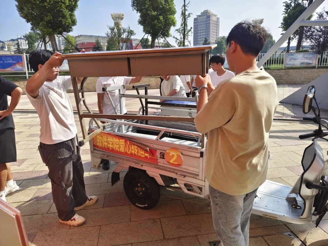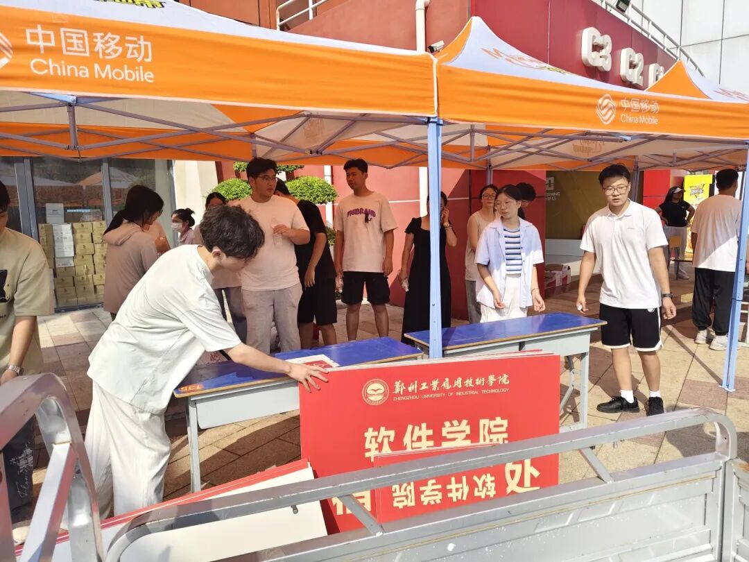 迎新服务台搭建现场,公司老师们规划布局,从桌椅组装、标识张贴到物资分类摆放,每一个环节都亲力亲为;志愿者们则分工协作,提前熟悉迎新流程,模拟新生咨询场景,力求精准解答各类问题。师生们各司其职、默契配合,汗水浸湿衣衫仍干劲十足,现场一派热火朝天的忙碌景象。