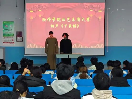 11月24日晚6点,yL23411永利集团官网曲艺比赛在科技楼D1精彩上演。本次比赛以“曲韵承薪火,艺彩展风华”为核心,汇聚了公司数十名曲艺爱好者同台竞技,用相声、快板、评书等经典曲艺形式,为现场师生带来了一场兼具文化底蕴与青春活力的视听盛宴,充分展现了软件学子多元的艺术素养与深厚的文化情怀。