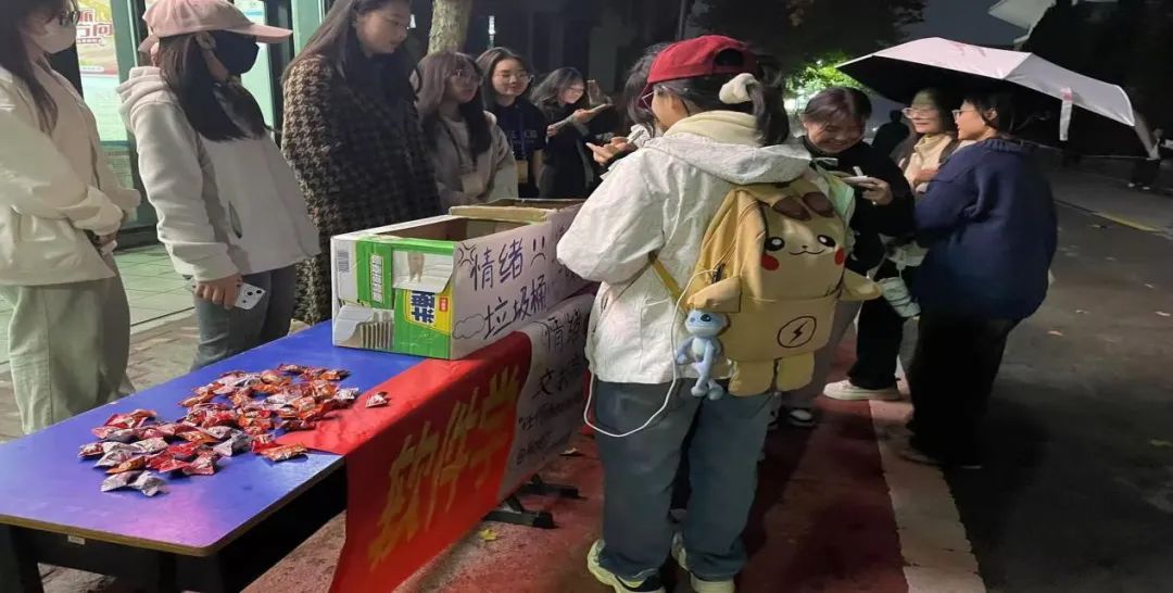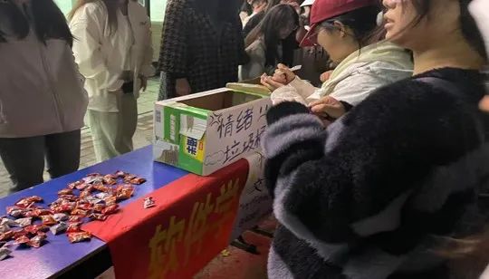 在“情绪垃圾桶”旁,不少同学驻足,他们低头沉思,认真地在便签纸上写下自己的烦恼和困惑。一张张便签纸,承载着同学们的压力和焦虑,被投入垃圾桶的瞬间,仿佛也带走了一丝丝忧愁。而在“快乐收集箱”旁,则是另一番热闹的景象。同学们积极分享自己的快乐瞬间,有的写下了与朋友的欢乐时光,有的记录了旅行中的美景,还有的分享了学习的进步和成就感。此次举办的“心灵百宝箱”心理活动,不仅丰富了校园文化生活,还为同学们提供了一个释放压力、调节情绪的平台。通过这样的活动,让同学们不仅学会了如何与他人分享快乐、倾吐烦恼,更学会了如何成为自己情绪的主人,以更加积极的心态面对未来的挑战。