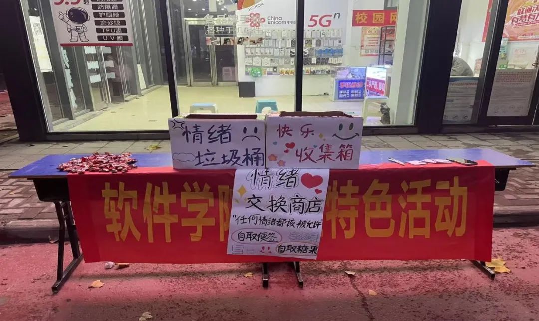 现场很多员工积极参与,在便签上写下自己的开心和烦恼。“心灵百宝箱”帮助员工们更好地理解和管理自己的情绪。同学们在纸上写下了他们不好的情绪,然后在商店内获取糖果。通过这种方式,同学们可以表达不同的情绪,同时增进对不同情感的理解。"情绪交换商店"不仅提供了一个释放和理解情绪的平台,还促进了人际间的沟通和理解。通过“情绪垃圾桶”让同学们释放负面情绪,减轻心理压力,避免情绪积压。“快乐收集箱”则鼓励同学们分享生活中的美好,传递喜悦,提升积极情绪体验。