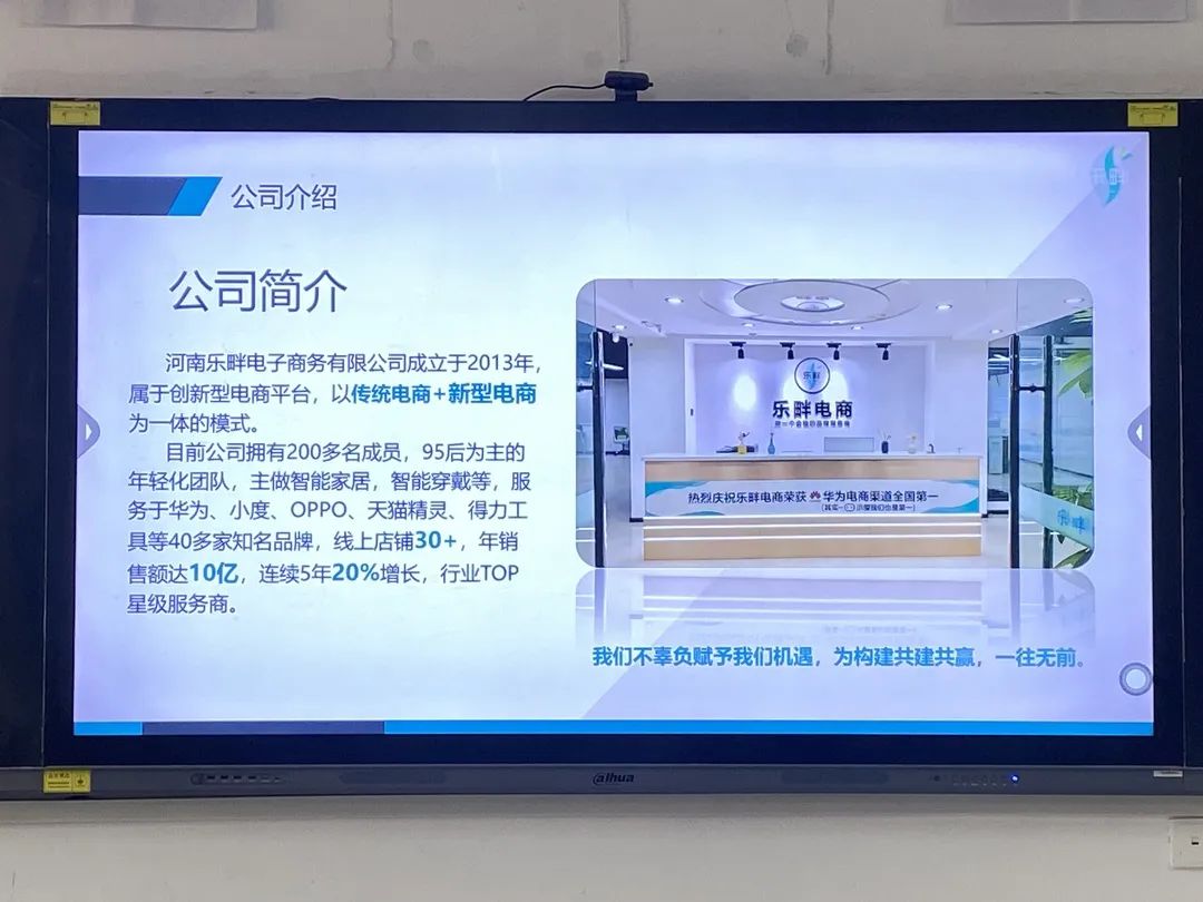 随后,负责人以PPT的形式,向大家详细介绍公司的经营范围及主营对象如智能家居,智能穿戴等电子产品系列,服务于华为、小度、OPPO、天猫精灵、得力工具等40多家知名品牌,线上店铺30+,年销售额达10亿,连续5年20%增长,行业TOP星级服务商,公司发展潜力巨大。
