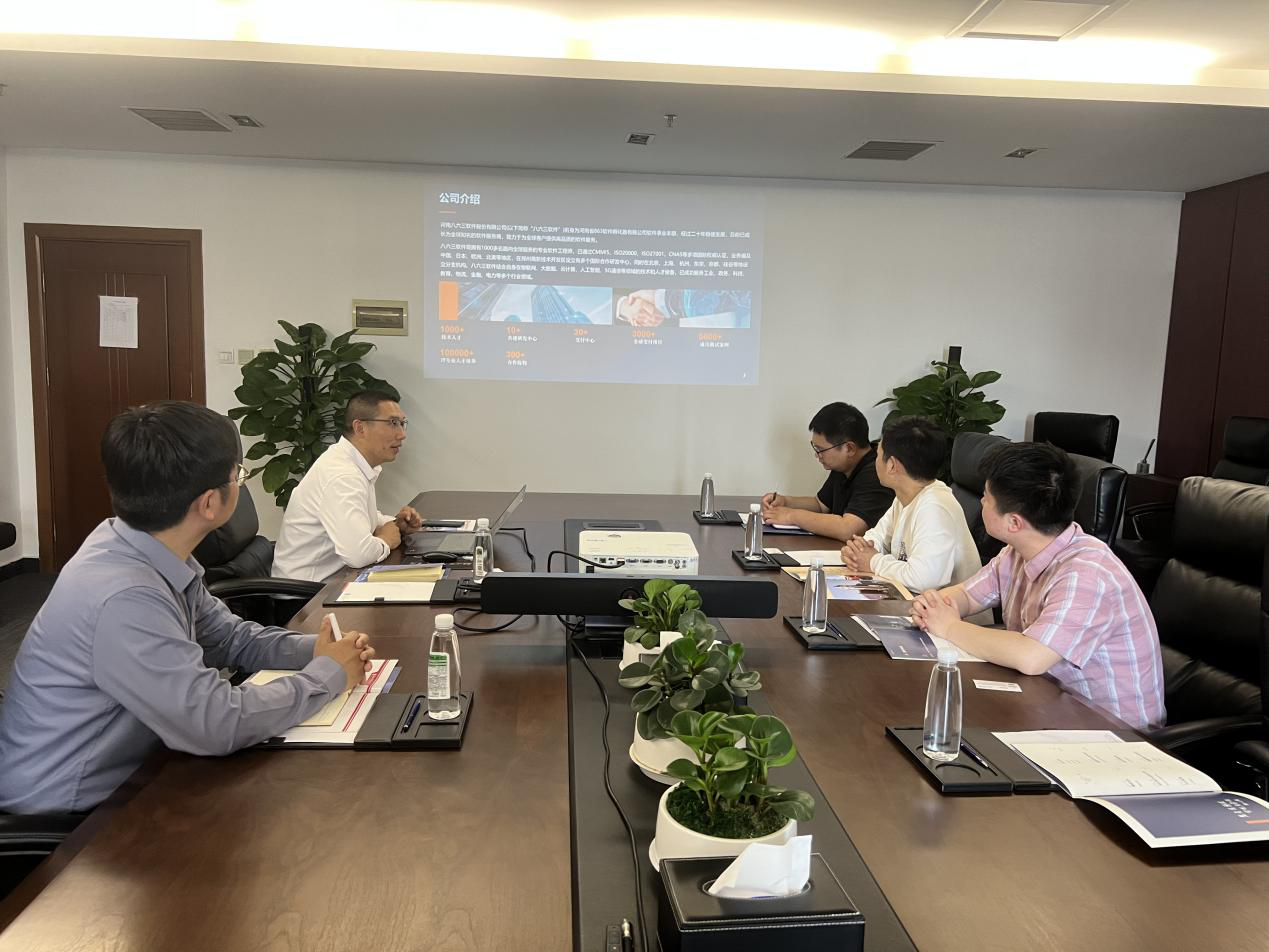 参观期间,企业负责人向大家详细介绍了八六三软件及其主营业务,并对公司行业优势、战略定位、人才培养、合作模式做了重点讲解,让双方对公司的整体规模、软硬件实力有了一定了解。