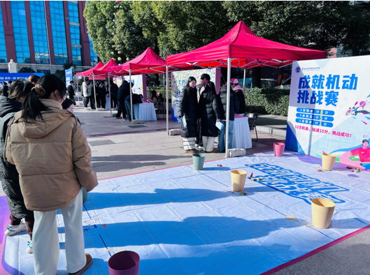 本次就业体验活动现场设置了10个与就业相关的体验区域,公司员工们热情高涨,积极投身各项体验活动,他们通过参与“达芬奇密码”环节,深入探索并认识自己的职业性格特征;在“加油向未来”环节,进一步加深对当前热门岗位的理解与认知;而在“个人品牌缔造者”环节,更是深入挖掘并明确自身的个人亮点与竞争优势。此外,还有飞越璀璨人生、胜任力对对碰、职业梦工厂、成就动机挑战赛以及满满正能量等板块,都为员工们提供了丰富的游戏体验机会。