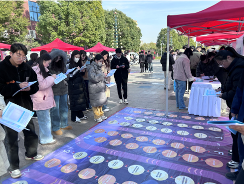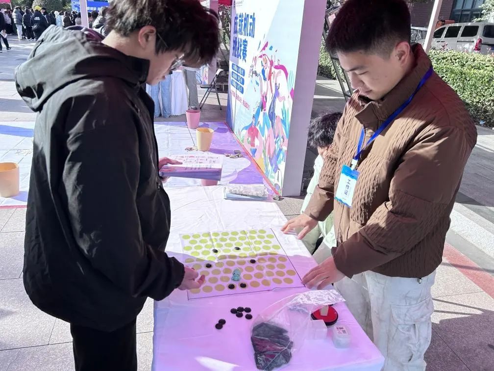 在活动中还有一道亮丽的风景线,就是公司多名志愿者,他们坚守岗位,各司其职,耐心地为参加活动的同学指导和讲解,除了协助同学们参与活动,志愿者们还会在同学们完成关卡后与他们探讨关卡设置的意义,帮助他们更清晰地领悟生涯规划的目的,这也让志愿者在助人过程中获得了自我提升和成长。